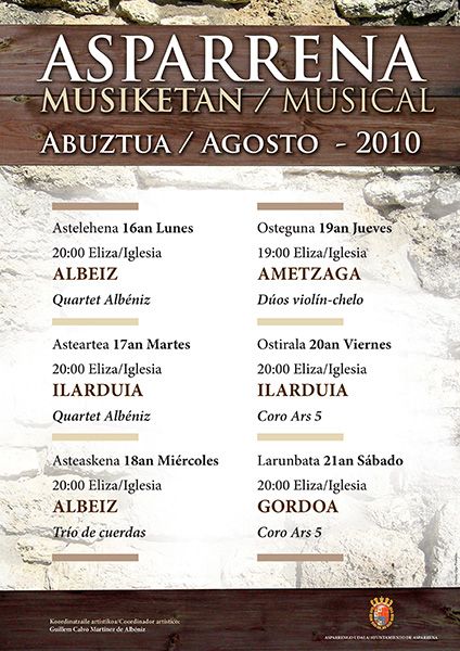 Valoramos muy positivamente la calurosa acogida que los pueblos de Asparrena y Barrundia han mostrado tanto a este nuevo ciclo de conciertos como a los músicos que han participado en él.